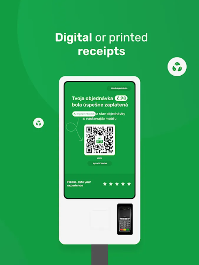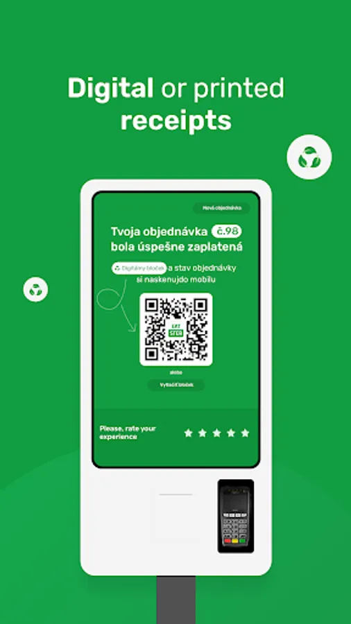 Selfordering kiosk from the company Eatster is a pilar stone component for achieving contactless & cashless gastronomy. Our kiosk can handle: