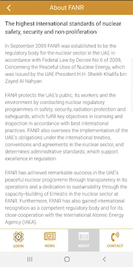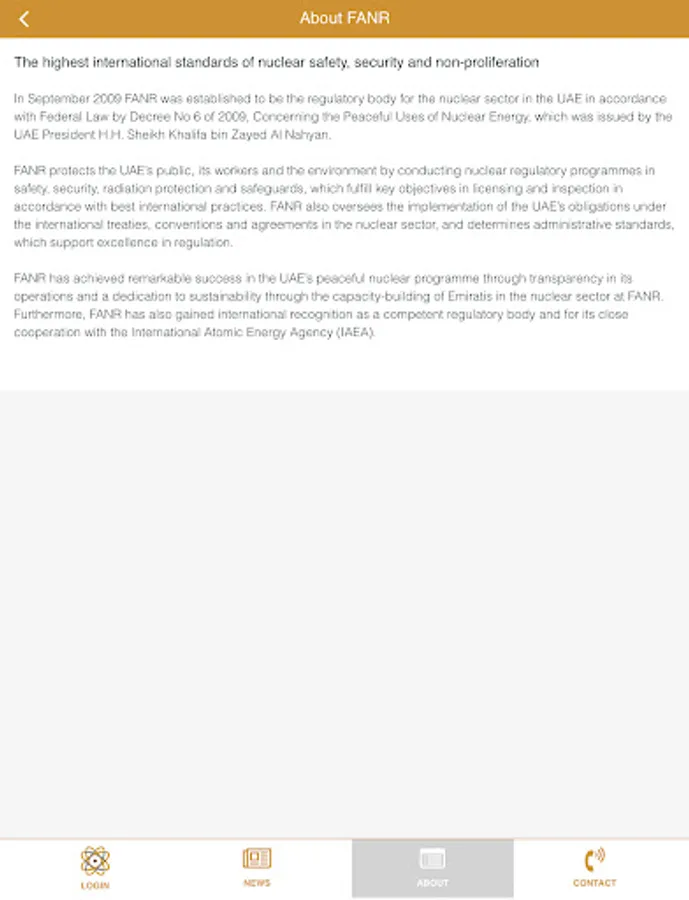 The Federal Authority for Nuclear Regulation (FANR) has developed FANR UAE mobile app in order to ease the life of FANR Customers in an interactive manner.