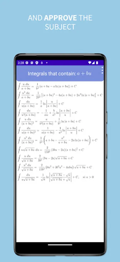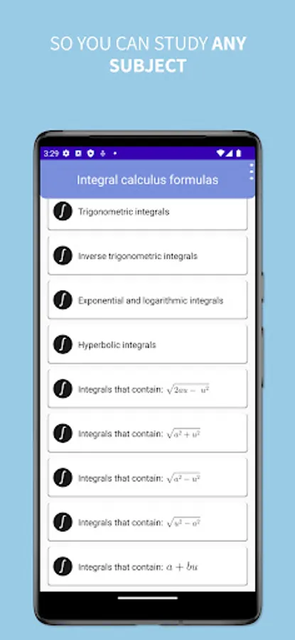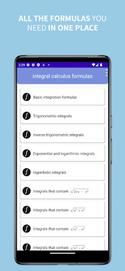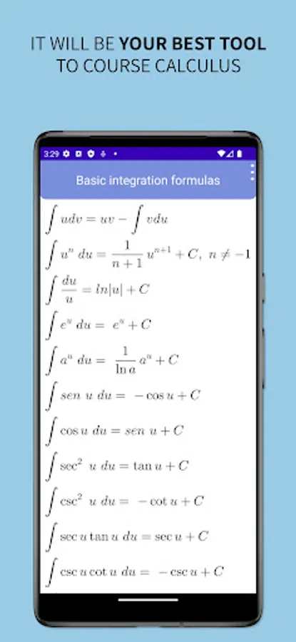 Integral calculus form is an application that makes available to the student the necessary formulas for solving integral calculus problems.