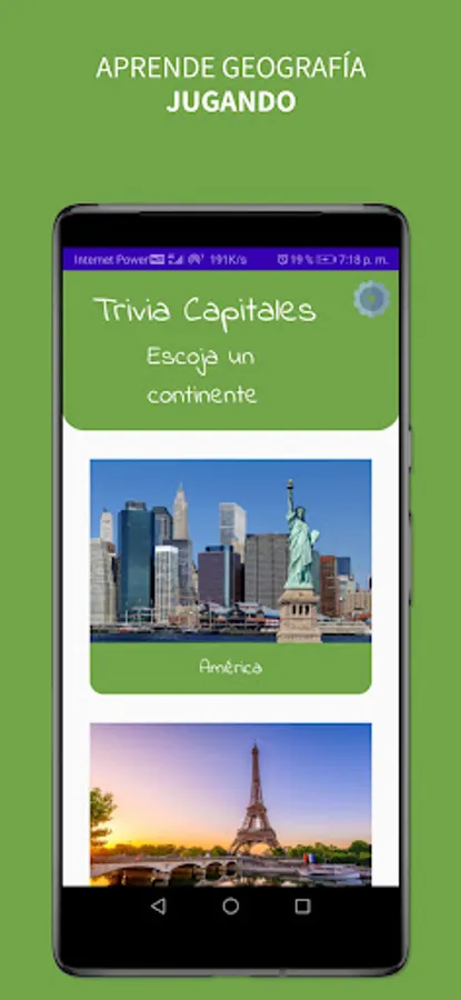 Learn the capitals of the countries of the world with this entertaining quiz. For each level you must relate 5 countries with their respective capitals. You will see a picture of a popular place, a historical monument, or a tourist attraction in the capital city, which will give you a clue as to which is the correct city.
