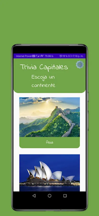 Choose a continent (America, Africa, Asia, Europe or Oceania) and start answering the questions, you must hit more than 50% of a level to unlock the next.