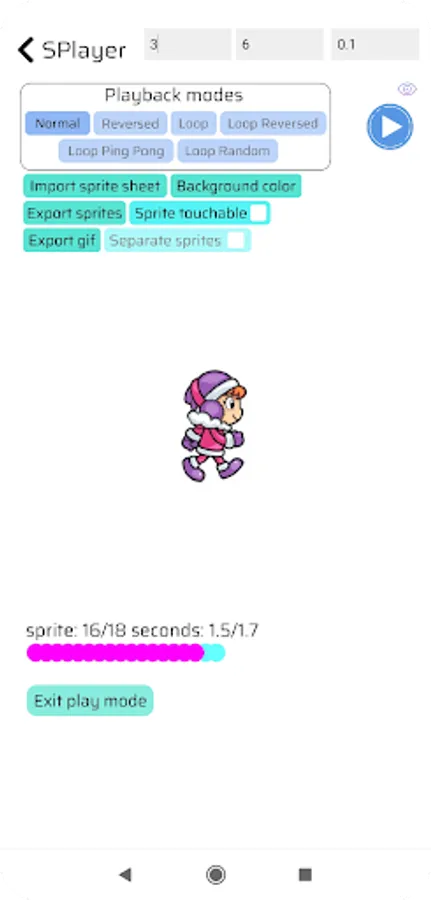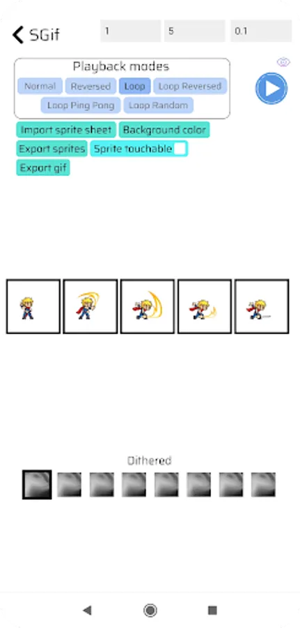 Sprite Animation Cutter has 6 playback modes: