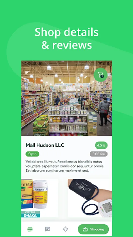 All you have to do, is download the shopping app on your device (phone or tablet) and create an account for yourself. Now, you will be taken to the Home screen where you will find links to all the stores presents around your location and by tapping a shop name you can start browsing their products that they are offering online delivery.