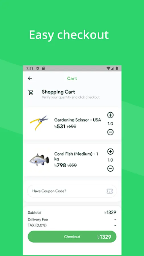 1. Just type in the product you want in the ‘Search’ tab and add it to cart.