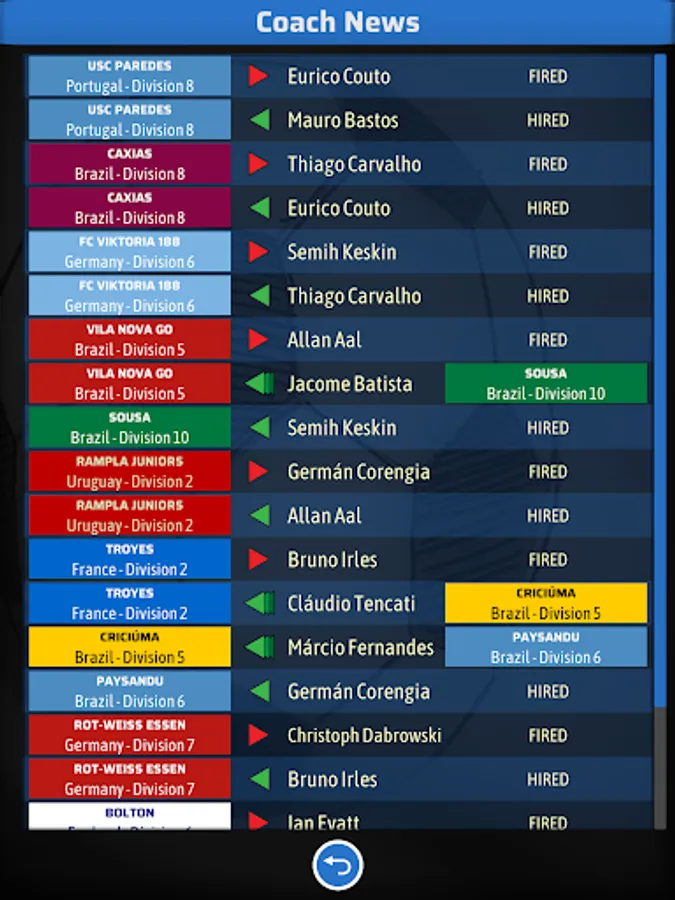 - Coach Union prevents you from being fired (except if team is removed from the last division in the national league). **