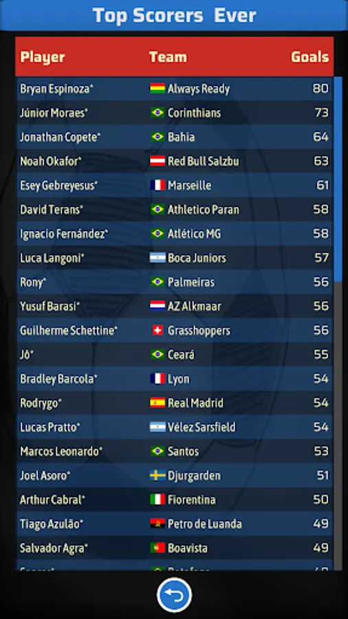 - World ranking with all players.