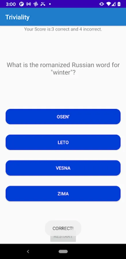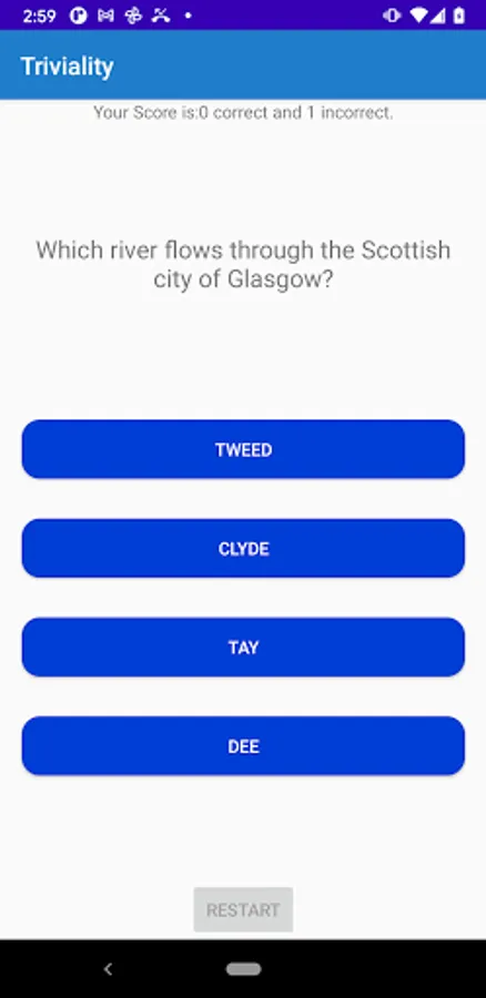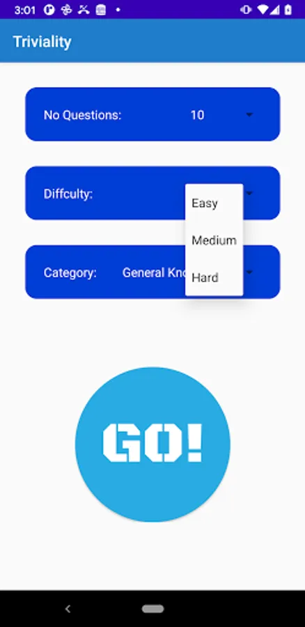 A easy, quick, no hassle app for a series of Trivia questions. Can be modified by difficulty, category, and number of questions desired. Feel free to email me for any questions.