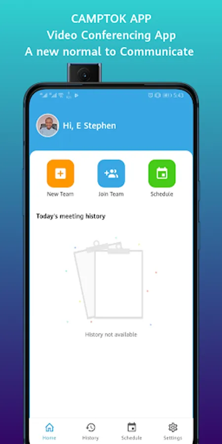 Camptok allows up to 100 participants in a single meeting adapting to your scale. Create a meeting and invite others to join the meeting by sharing the meeting code from the app. You can also join previous meetings by browsing the past meeting history.