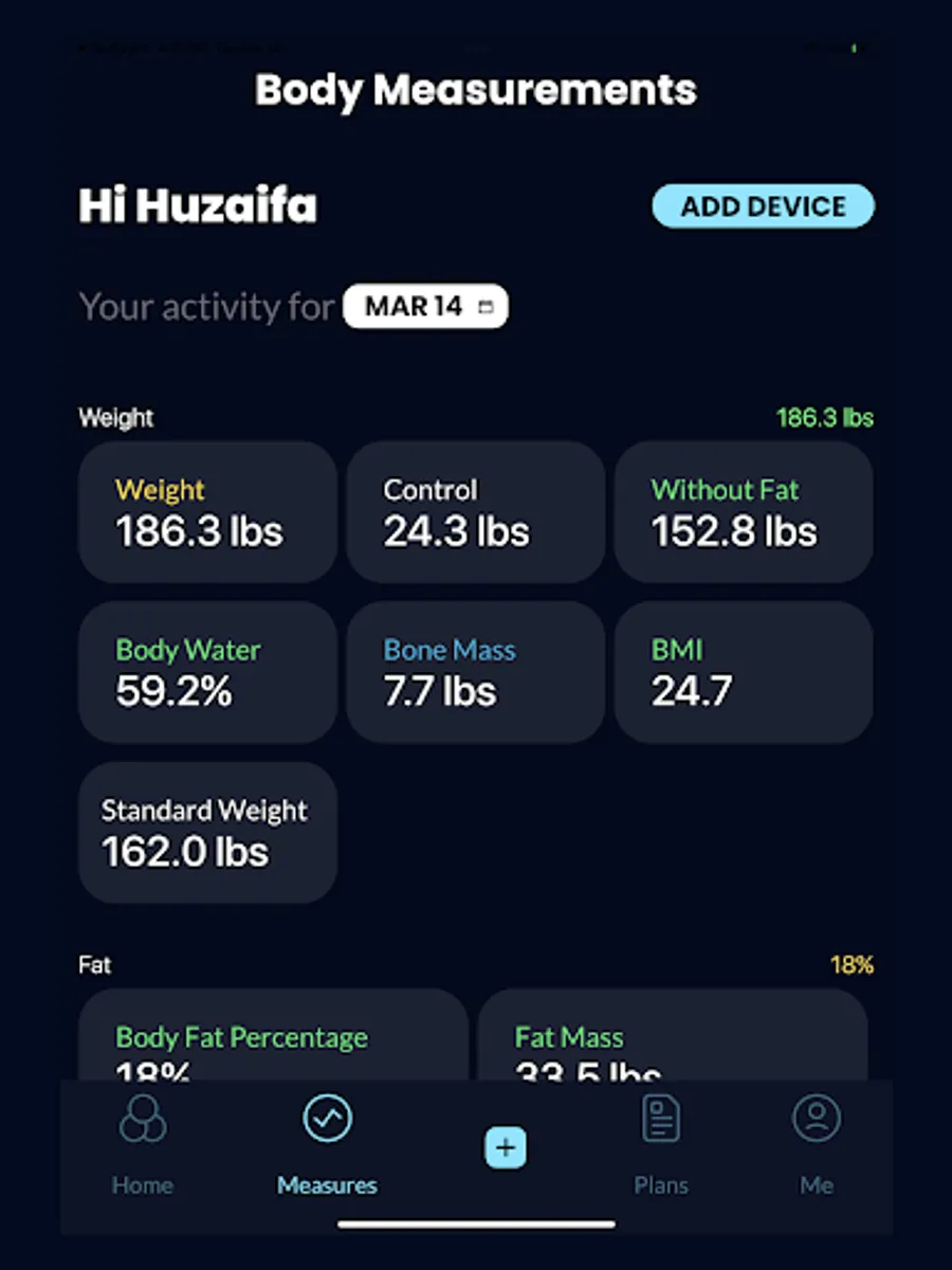 Hume Health is the companion app to the FitTrack smart devices and provides you with your 17 body composition metrics.