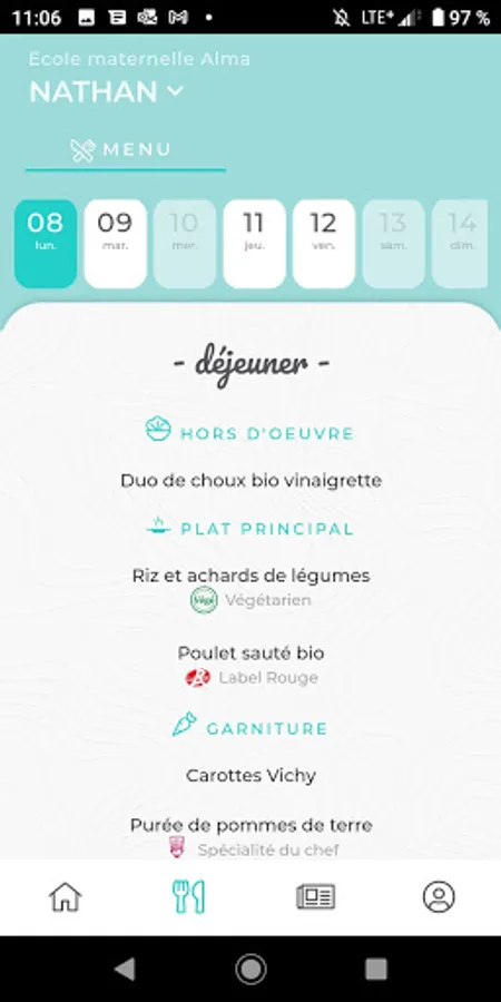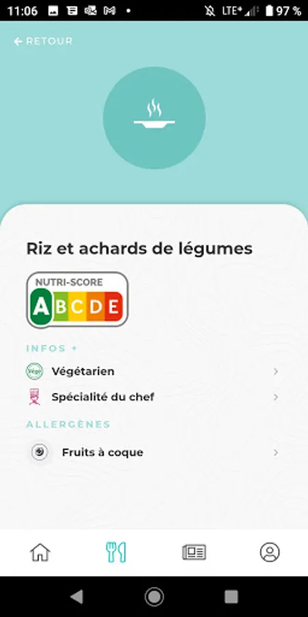 You have access to the quality of the cooked products (labels, appellations, etc.), to the main allergens and also to the nutritional quality of each element of the meal with the indication of the Nutri-Score.