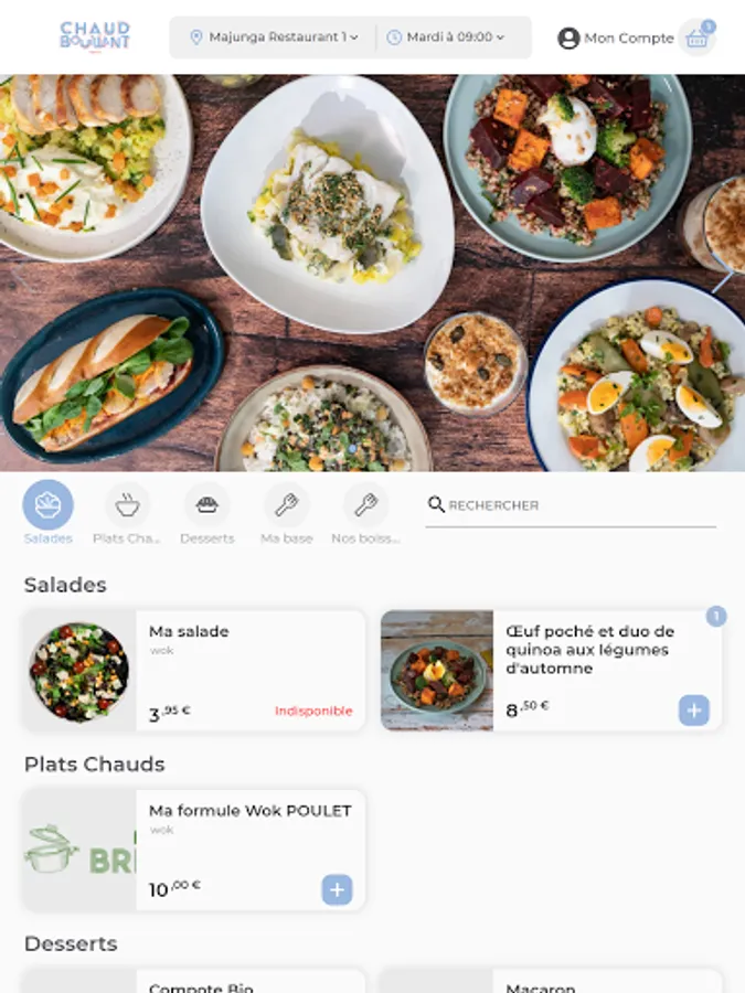 Chaud Bouillant is a digitalized catering offer in click & collect mode that offers healthy, homemade dishes with fresh products and a human service without technical constraints.