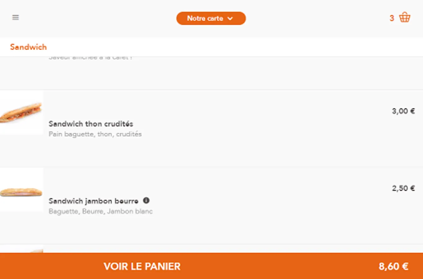 Simple, fast and convenient, pre-order what you like to the card or formula among all my favorite products: sandwiches, bagels, paninis, drinks ...