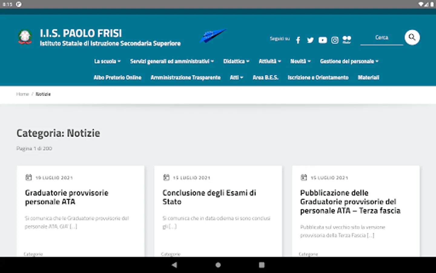 IIS Paolo Frisi alerts its users in real time to any new news, circular or event issued by the institute.