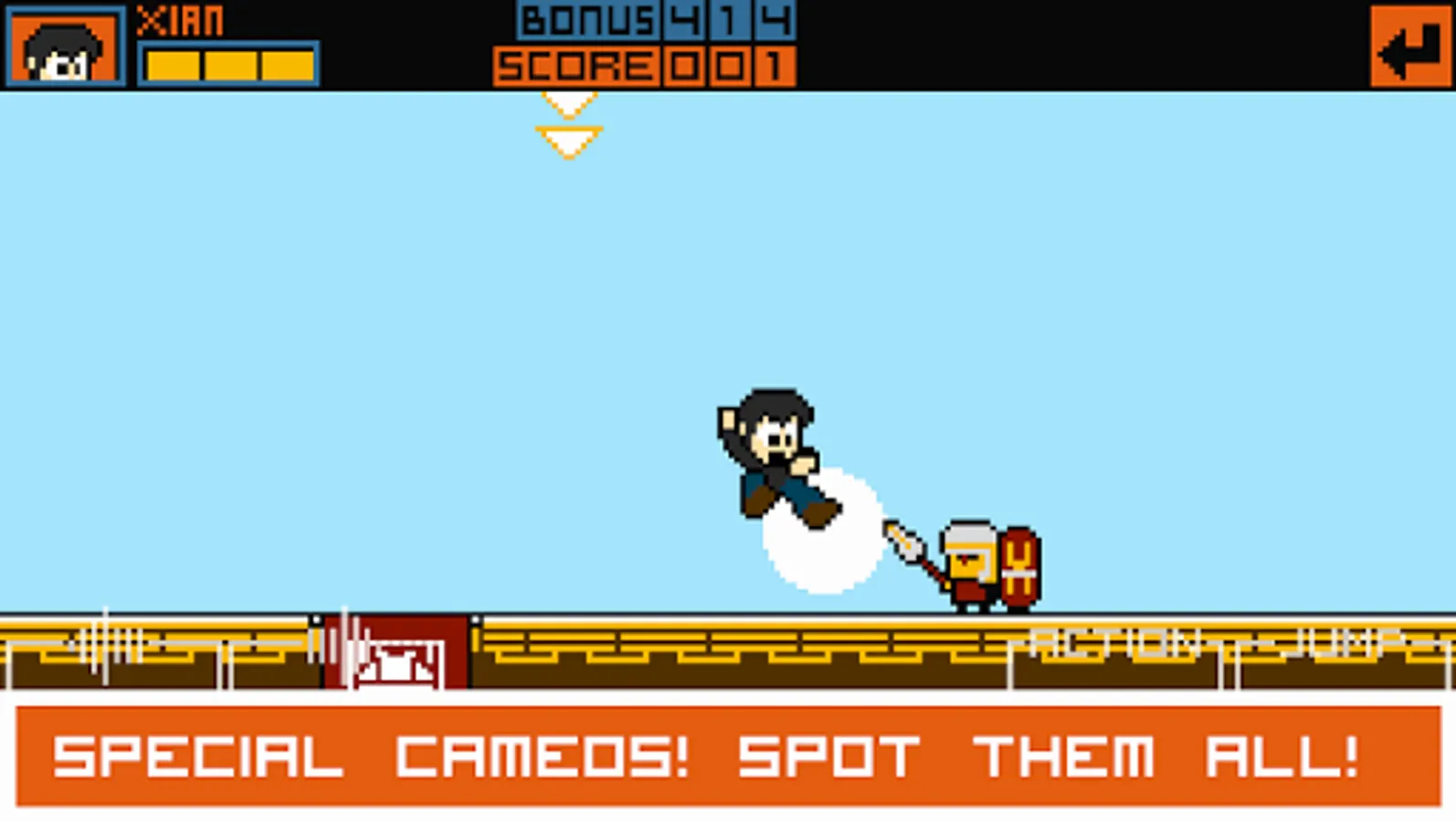 • This pixel art-style side scroller is reminiscent of popular side-scroller games from the late 1980s and early 1990s, brought to mobile devices! The gameplay is designed to be challenging, and players will unlock new, unique characters whose different powers present new ways to play.