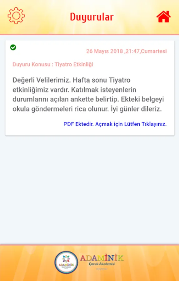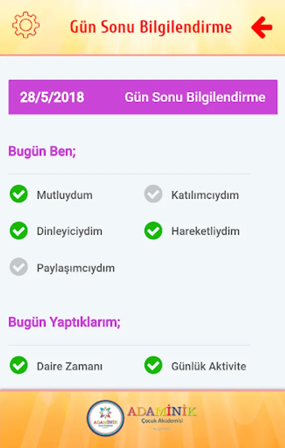 Adaminik the Adaminik Children's Academy of parents with Ideas was developed for Children's Academy, children are instantly access all kinds of information, can follow the school bus, you can be notified via their mobile device from school announcements and can see photos uploaded by teachers.