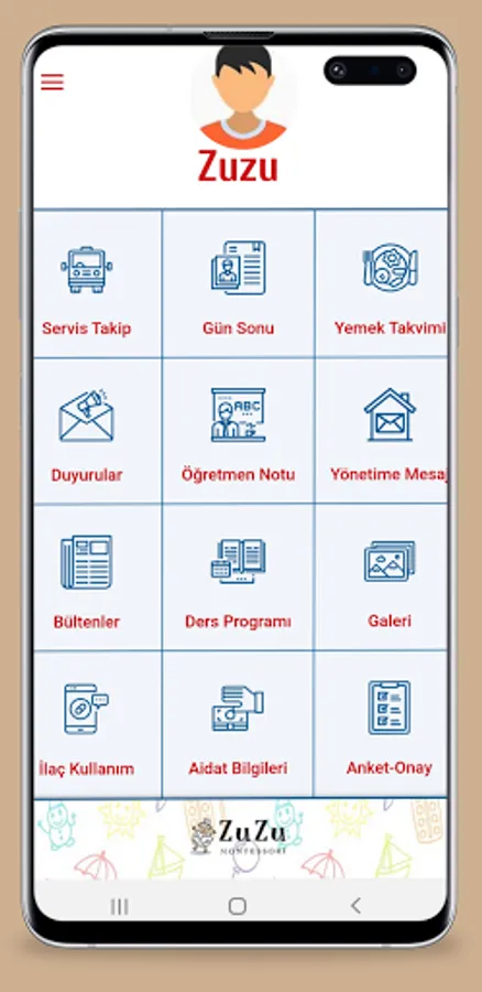 With the ZuZu Montessori Mobile Application developed for ZuZu Montessori, parents can instantly access all kinds of information of their children, follow the school service, be informed about school announcements on their mobile devices, and see pictures uploaded by teachers.