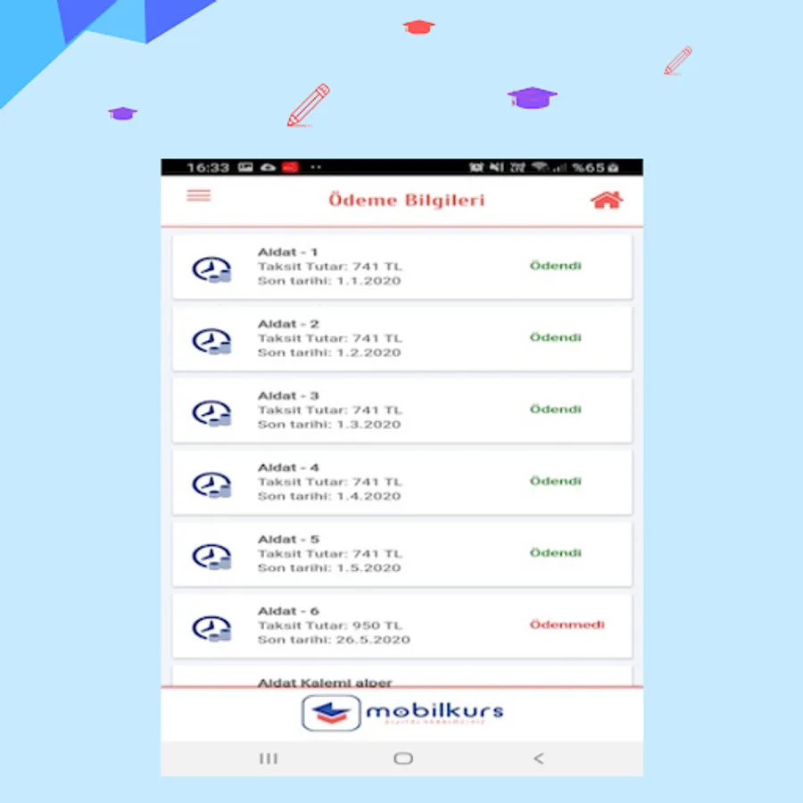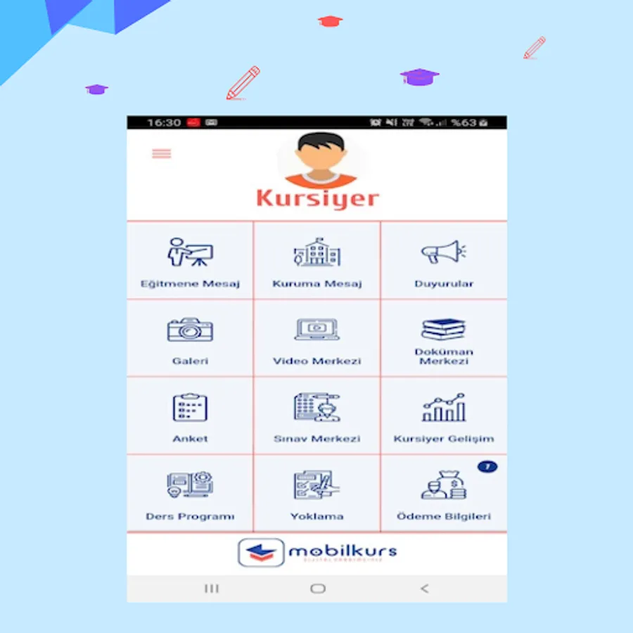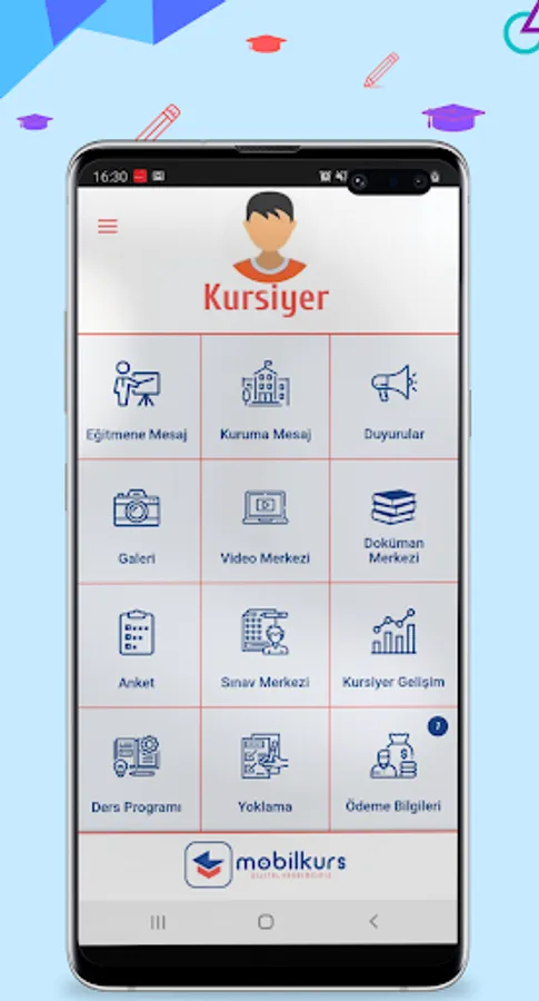 With the Mobile Course Application, you can instantly access all kinds of information of trainees, trainers and parents, and inform them by sending announcements and messages through the application. Instructors can take attendance over the application, share photos and videos, send private messages to the trainees, managers can see the financial status of their institution through the application, and follow the attendance of the entire institution. It can record the progress of the trainees. If you wish, you can prepare a Quiz and send it to the trainees.