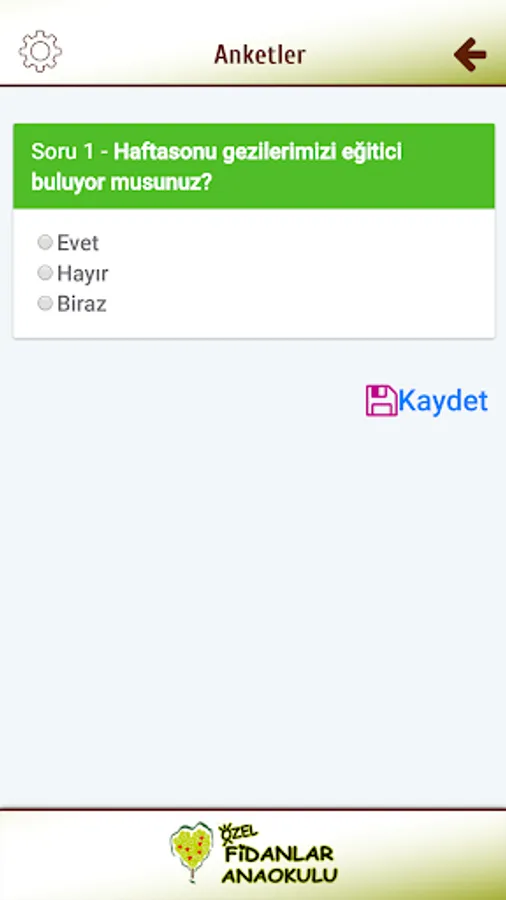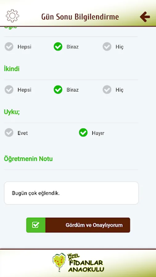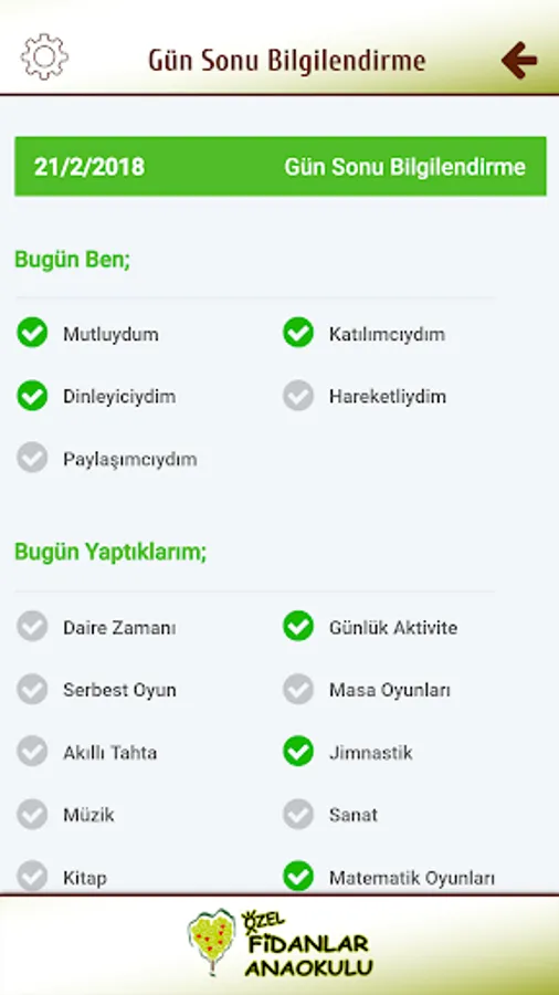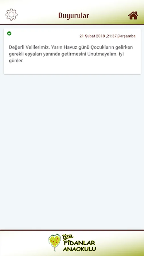 Saplings Fidan developed for Kindergarten Application with parents, children are instantly access all kinds of information, can follow the school bus, you can be notified via their mobile device from school announcements and can see photos uploaded by teachers.