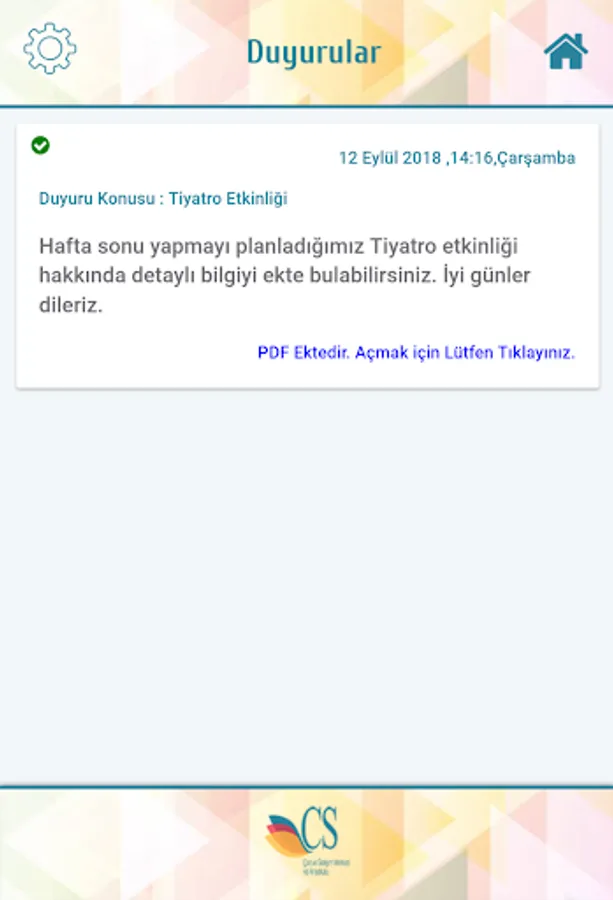With the CS Children's Mobile App developed for the CS child, parents can instantly access all kinds of information of their children, follow the school service, get notified of school announcements via their mobile devices and see pictures uploaded by teachers.