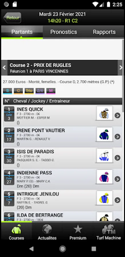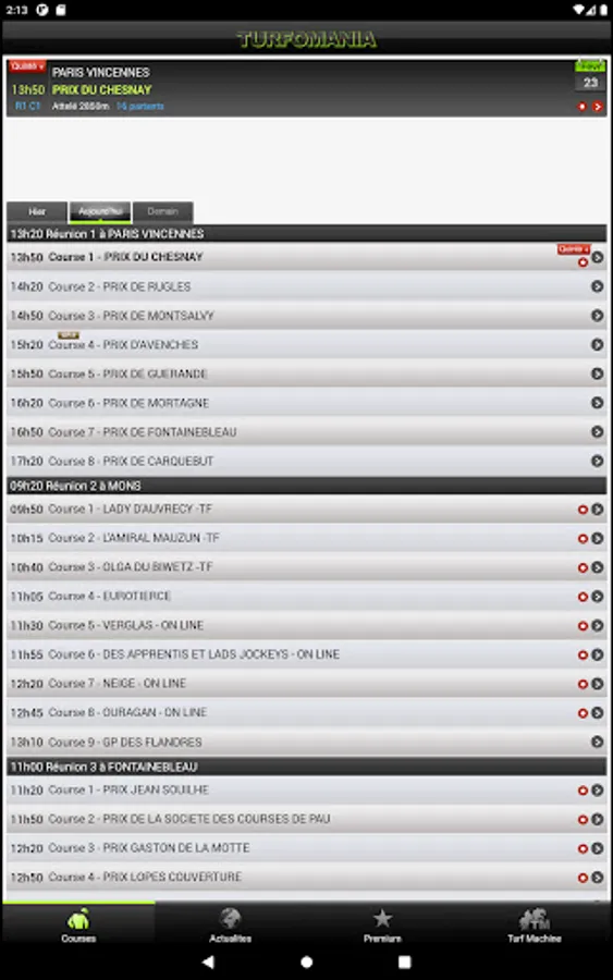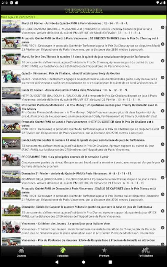 With the TURFOMANIA application, access in real time to forecasts on horse races organized in France and abroad, support for PMU meetings.