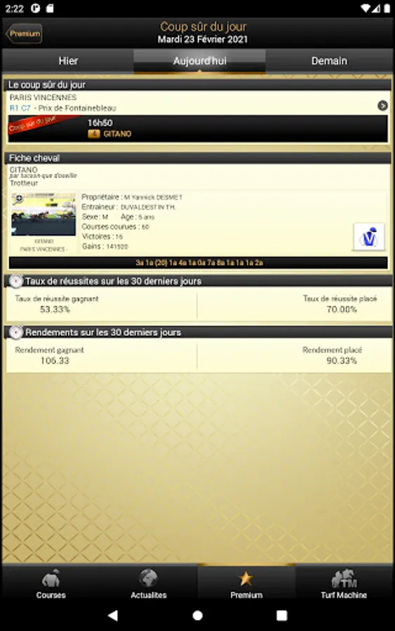3. A Premium space: are you already a Premium member of TURFOMANIA? A space is dedicated to you, with: