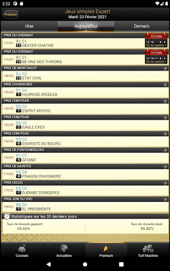 A simple and intuitive access to navigate from race to race and to consult the starters, forecasts, arrivals and reports. Clear and easily accessible information.