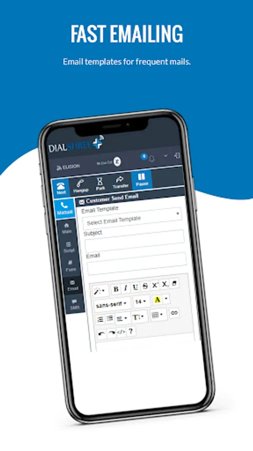 If DialShree user has an omnichannel call center solution license, the agent will see an email module from which he can send an email to the customer. An agent can also access the saved email templates.