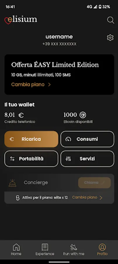 - Access to the Personal Area of telephone services where you can check your residual credit, your elicoin wallet, change and customize the rate plan, top up, manage your payment methods and connect with one click to our concierge service operators
