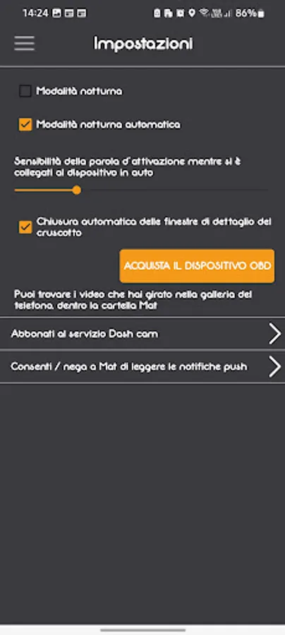 From today you can always have a copilot with you. A voice assistant that allows you to use all the main features of your phone without using your hands. You can make calls, read notifications or record videos just by asking your Voice Assistant Copilot, who also alerts you when you are dangerously close to an entrance in the Italian ZTL (in the cities covered by the assistant). With Karl the OBD device that can be purchased separately, Mat's voice assistant informs you about the status of your car and communicates the most important data from the on-board computer.