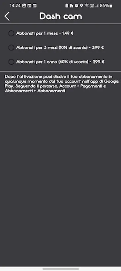 It is possible to subscribe to the dash cam service for safety on the move, always operated with the voice assistant, through three different subscription plans:
