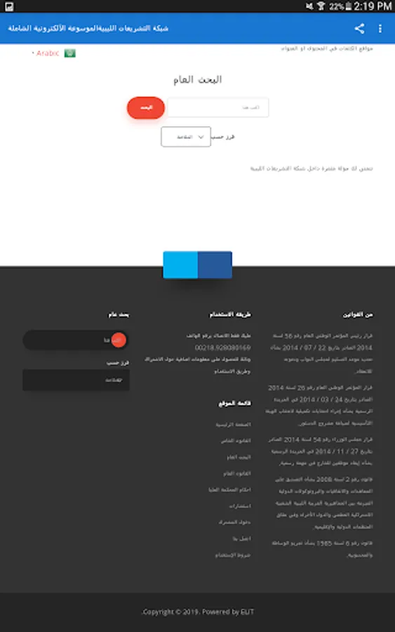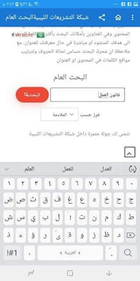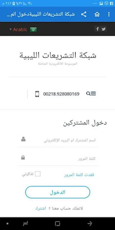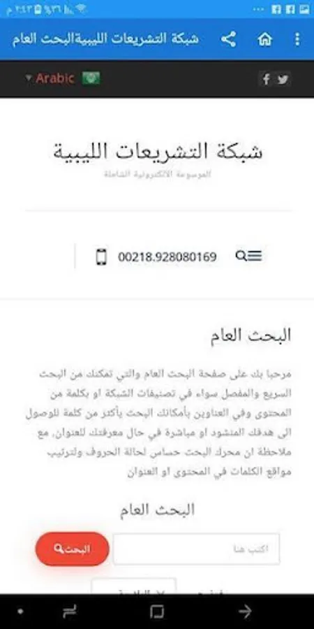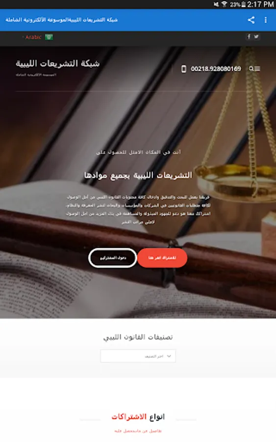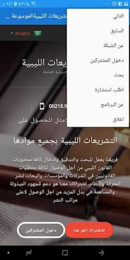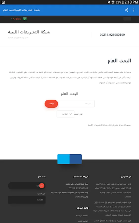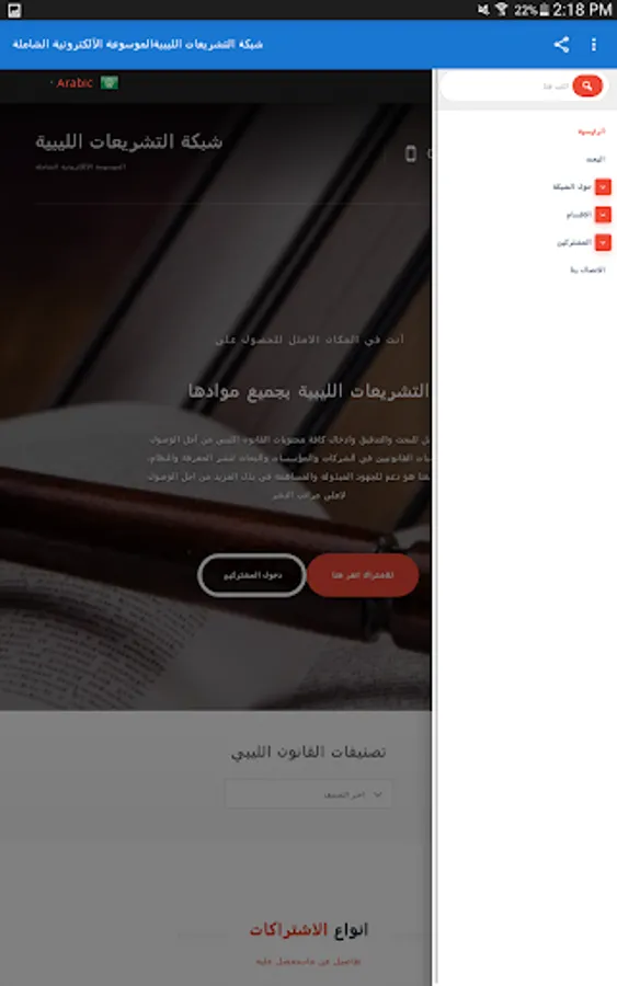 This application provides access to the Libyan legislation network database, subscription and registration method