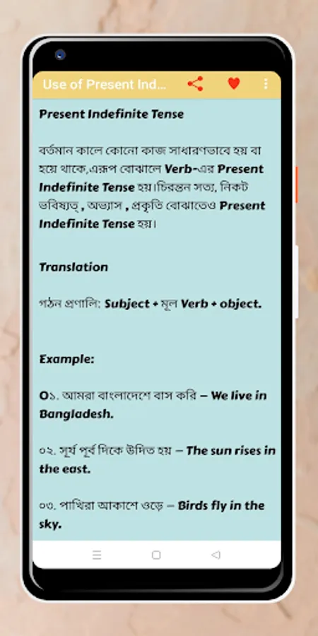 বর্তমান যুগে ইংরেজি একটি অতীব গুরুত্ববহ ভাষা।পৃথিবীর কোথাও নেই যেখানে ইংরেজী ভাষা দরকার না হয়। ইংরেজীতে কথা বলার জন্য বা speaking English ইংরেজি লেখা writing English জানা ও শেখার জন্য Grammar বা ব্যাকরণ ও vocabulary বা শব্দার্থ জানা অনেক জরুরি।আর এ কাজ গুলো সহজে করতে English Grammar বা ইংরেজি ব্যাকরণ এর নিয়ম গুলো আয়ত্ব করতে হবে।কিন্তু অনেকেরই পক্ষে এ কাজটি করতে অনেক দূরহ হয়।এ কাজটি সহজ করার জন্য আমরা Grammar এর উপর ভিত্তি করে বাংলা বাক্যকে ইংরেজিতে সহজে Translation বা অনুবাদ করার কিছু নিয়ম নিয়ে এসেছি।এতে করে যে কোন বাংলা বাক্য বা কথা কে সহজে ইংরেজিতে অনুবাদ করতে পারবেন।আর আমরা সেই সব বাক্য নিয়ে এসেছি যা আমরা দৈনন্দিন জীবনে বহুল ব্যবহৃত sentence বা বাক্য।English Grammar এর প্রধান Tense অনুযায়ী বাক্য গুলো আনা হয়েছে...