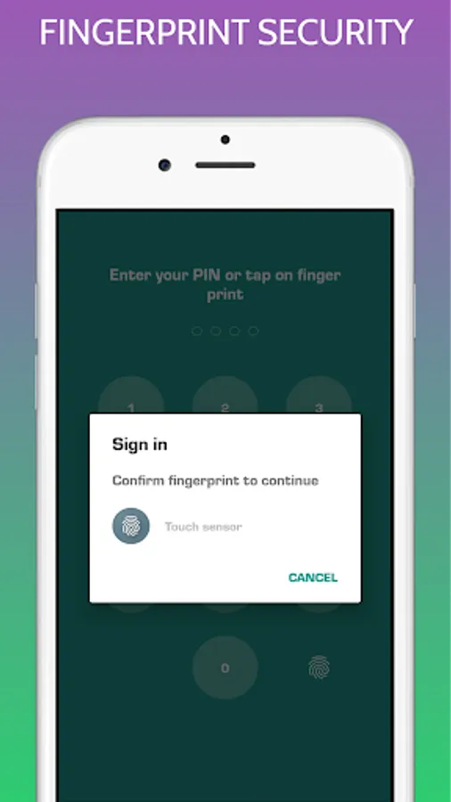 8) Provides the facility of Pin code and fingerprint for the security of the data of the