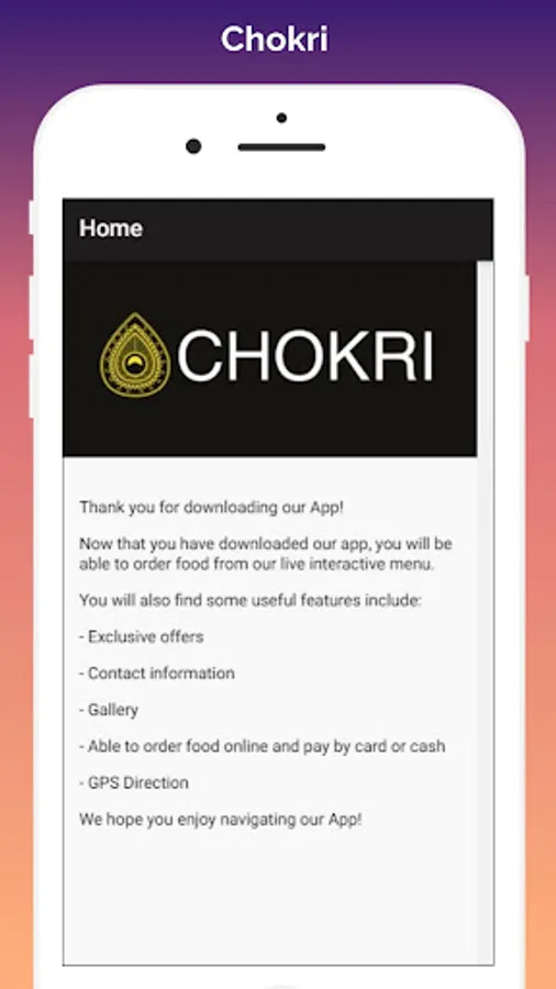 Once you have downloaded our app, you will be able to order food from our live interactive menu.