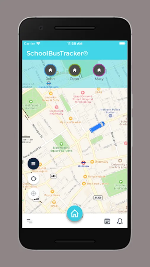 Mobile parent app part of a unique school transport software suite. Parents and guardians receive private notifications to their smart phone, showing collection and drop off points of their children whilst they are on their school bus route. Advanced parent notifications of bus departure, arrival and proximity location(one stop away from pick up or destination). Parents can make temporary route changes for their children as well as report their absence easily with our integrated messaging module.