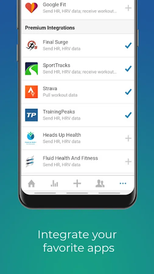 Elite HRV Integrates with Training Peaks, Heads Up Health, Final Surge, Strava, Google Fit, and Sport Tracks.