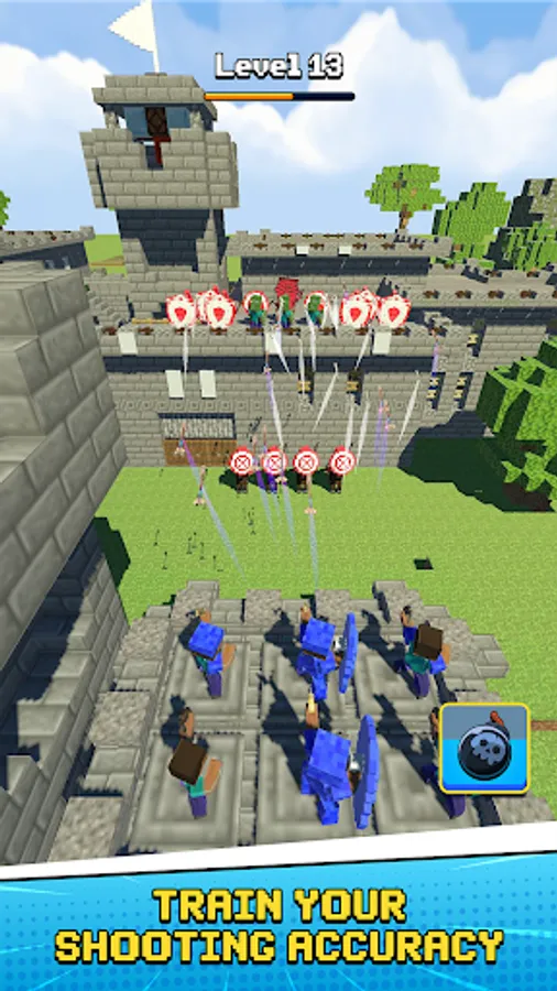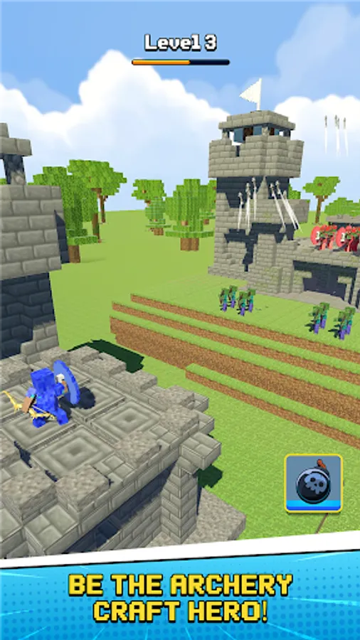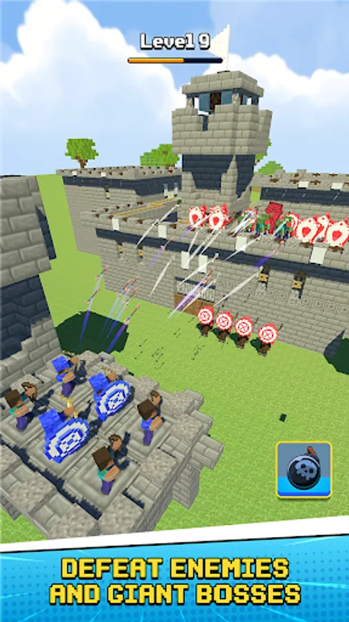 The Craft War: Merge Battle is set in a fantasy craft world where the enemy army is trying to invade your kingdom. Your goal is to defeat the enemy army and capture their castle in each level to win the bow and arrow war. Playing Craft War: Merge Battle, you will face different enemies, such as zombies, skeletons, spiders, creepers, and many other mutant mobs. Each enemy has its own strengths and weaknesses, so you will need to use strategy and tactics to merge win the archery battle.