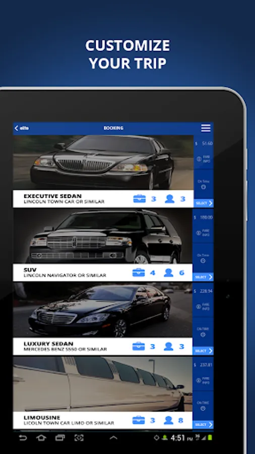 Customize your trip or account to accommodate your business or personal needs: from corporate rides to personal travel -- round trips to hourly or one-way -- package pickups to special request.