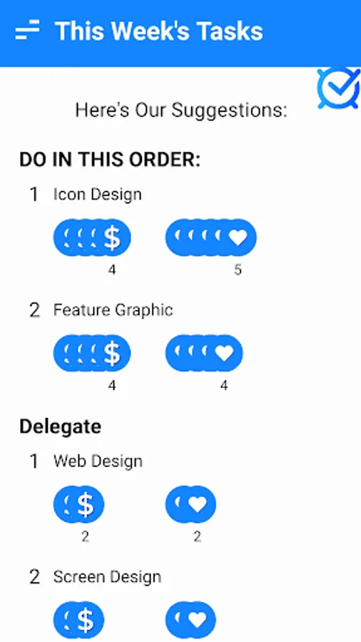 Simply input your task, select how profitable it is & how much your love it, and watch as we automatically categorize your highest priorities! (Effortlessly!)