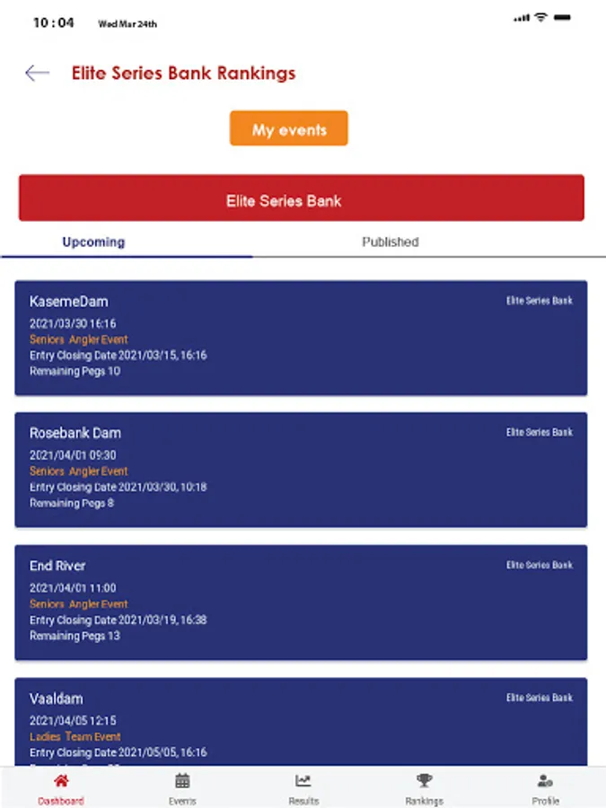 The app allows you to conveniently enter Elite Series tournaments, keep up to date with upcoming events, tournament results and much more.