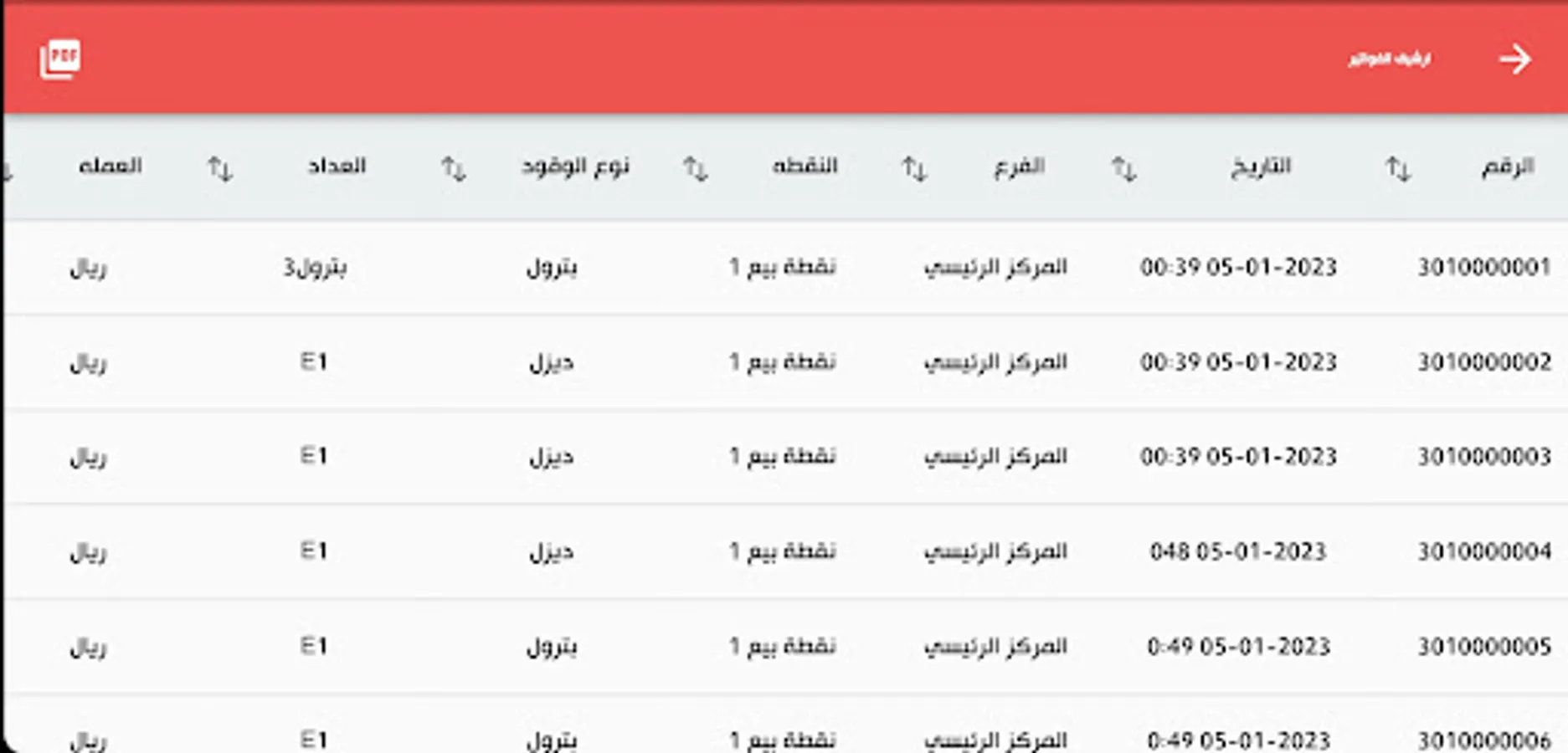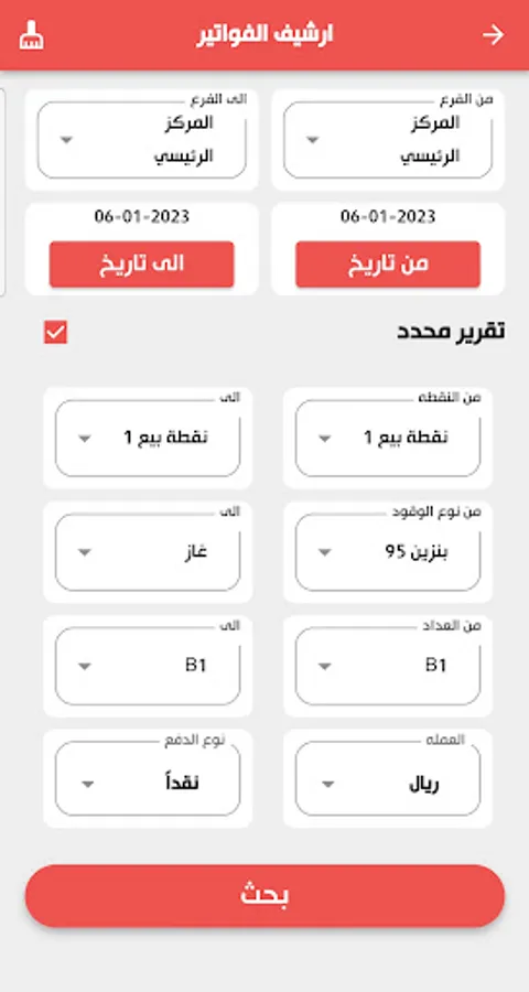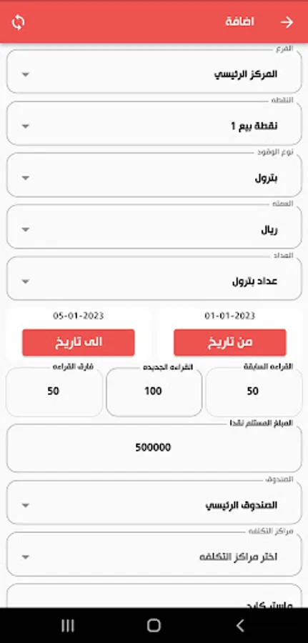 5- Posting (editing) sales of counters to employees of various types (cash - order - coupons - network), according to branch, point and shift, specifying the quantity sold from each meter, the cash amounts collected by employees and determining the surplus and deficit.