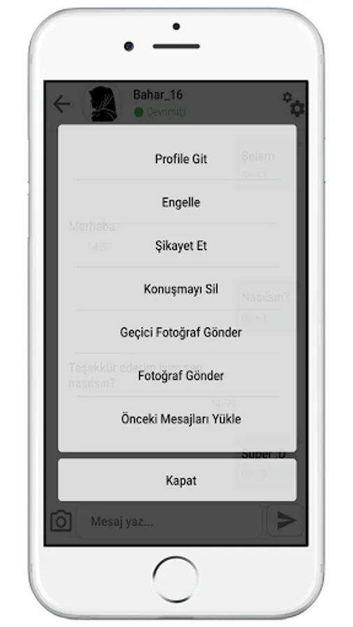 In our application, instant messaging system is used so that you can message each other comfortably with the members you want to meet. In our instant messaging system, there is a temporary photo sending feature so that you can securely share your pictures with the members you are messaging. In this way, the pictures you send to the other party are automatically deleted from the other party's phone or computer within 20 seconds. The person you share the picture with will not be able to save these pictures in any way. You can easily message the members you want to meet in our application without having to give your social media or other contact information. You can block people you don't want to text you.
