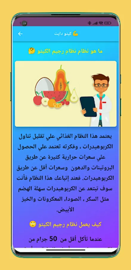 The Keto Diet system in Arabic is a simple and easy to use application that helps you lose weight. The Keto Diet application in Arabic without the Internet contains a set of wonderful information from reliable sources. The application of the Keto Diet system in Arabic is free