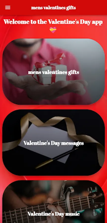 Valentine's Day is a time to celebrate romance, love and loyalty, we offer you the mens valentines gifts application that offers you a collection of wonderful messages, calm music and beautiful wallpapers, the mens valentines gifts application also contains valentines day gifts for him and first valentine gift for boyfriend and Ali valentine gift for boyfriend