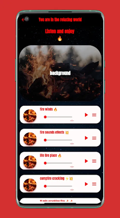Fire sounds with crackling and crackling in sound of a crackling fire app are relaxing to listen to when you are stuck indoors, trying to do some productive work in front of computer or studying for school. No matter what you do, listening to my sound of a crackling fire app containing soothing fire sounds will calm your body and mind which in turn helps increase your focus. They are also great as sleep sounds during the night, as they create a relaxing atmosphere in the bedroom