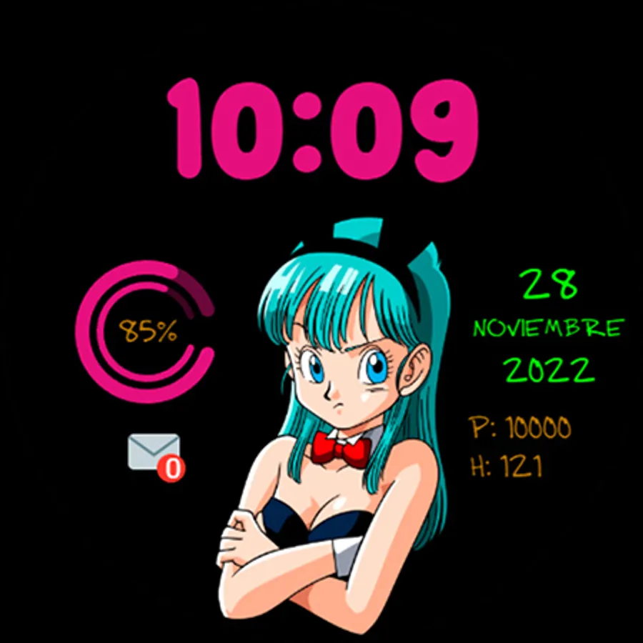 Watchface fan art of Bulma not pornographic for Wear Os..