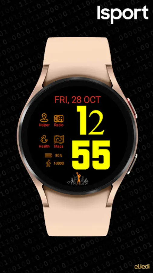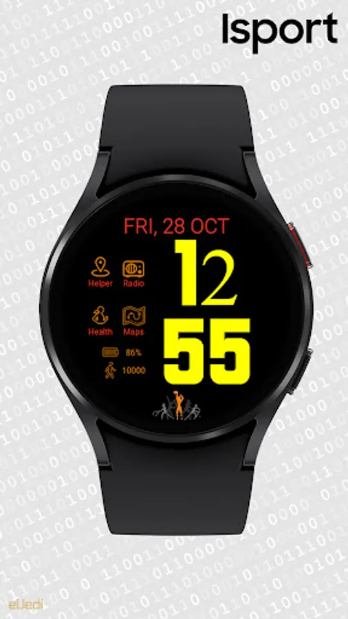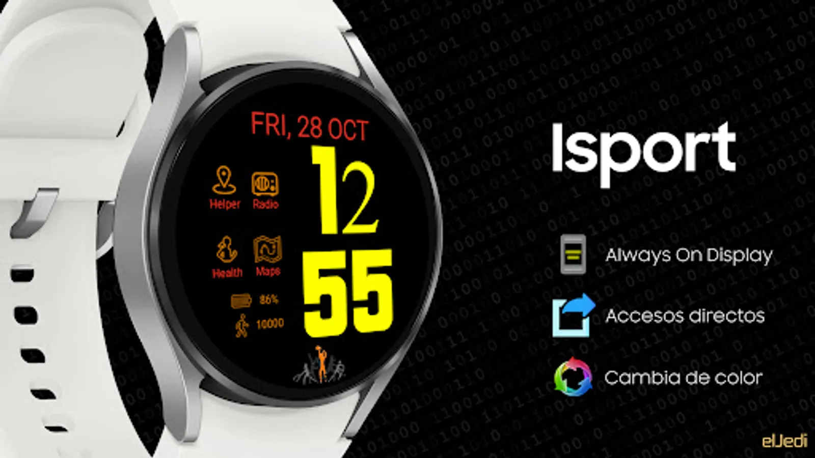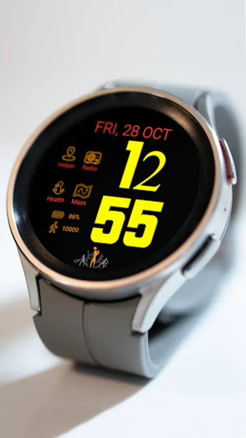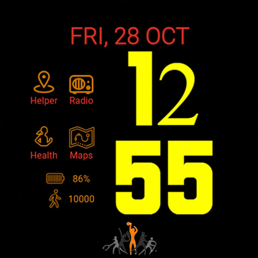 Digital watch face with AOD, Shortcuts, and color change. Contains access to sports applications