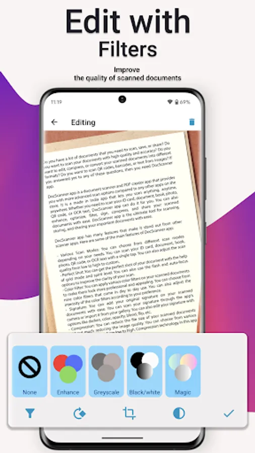 Effortlessly scan various types of documents using Doc and Document Scanner.