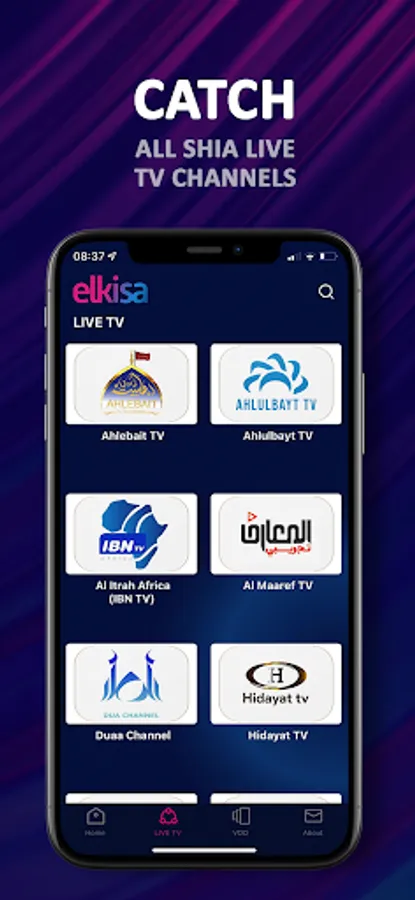 Access Live Shia TV channels and videos with the Elkisa TV APP.
