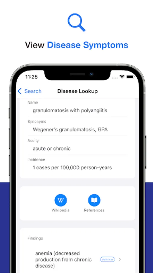 - Over 1700 diseases including associated symptoms, symptom frequencies, and population incidence data